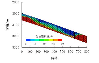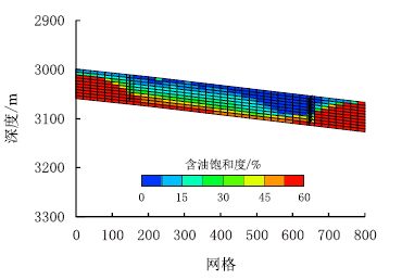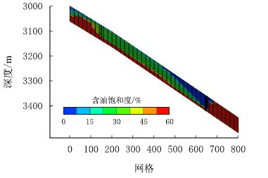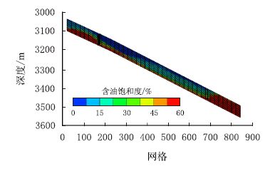 | 图3 倾角35° 时预测期末剩余油分布 Fig. 3 Remaining oil saturation distribution at the end of predictingperiod when dip angle=35° |