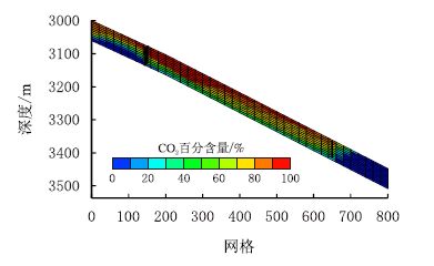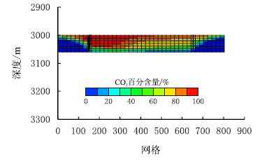 | 图4 倾角0 时预测期末CO2 波及范围 Fig. 4 CO2 distribution at the end of predicting period when dipangle=0 |