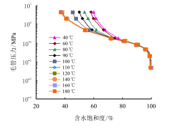 | 图1 不同温度热水对毛管力曲线的影响 Fig. 1 The effect of hot water at different temperature on capillary curve |