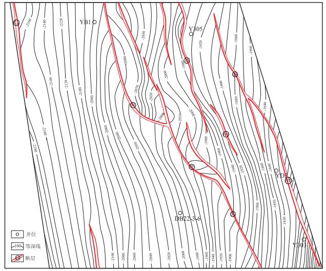| 图1 研究区青山口组顶面构造图(据东北油气分公司资料修编) Fig. 1 The top structure diagram of the qingshankou formation in research area(From Northeast Oil and Gas Company, Modified) |