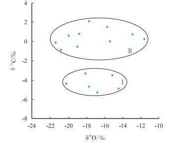 | 图10 碳氧稳定同位素分布图 Fig. 10 Carbon and oxygen stable isotopic distribution |