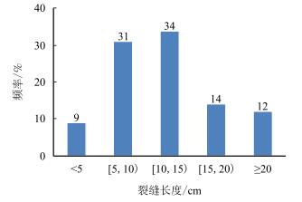 | 图2 裂缝长度分布直方图 Fig. 2 Distribution histogram of fractures′length |