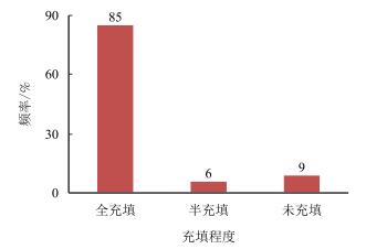 | 图4 裂缝充填程度分布直方图 Fig. 4 Distribution histogram of fractures′filling degree |