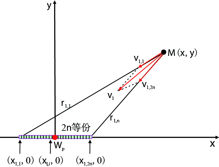 | $|{{\nu _1}} | = \dfrac{q}{{2n}} \cdot \sum\limits_{i = 1}^n {\dfrac{{\sqrt {2\left(r_{1, i}^2 + r_{ 1, {2n + 1 - i}}^2\right) - {{\left(2{x_{\rm{f}}}\right)}^2}} }}{{2\pi {r_{1, i}}{r_{1, {2n + 1 - i}}}}}}$ | (3) |