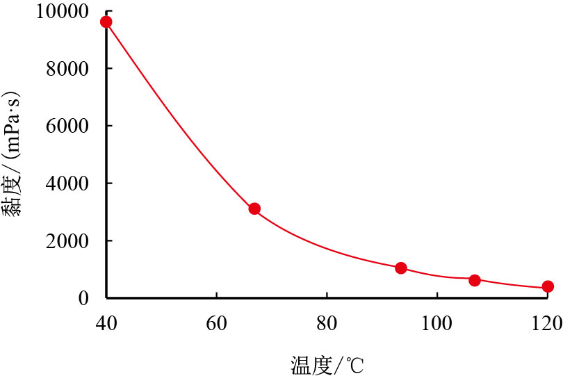 | 图1 实验原油黏温曲线 Fig. 1 Viscosity-temperature curve of experimental crude oil |
