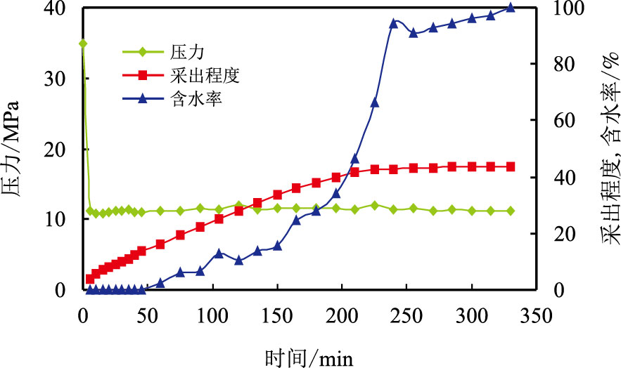 (5)计量产油量和产气量,直至吞吐出口端含水率98% 时实验停止。