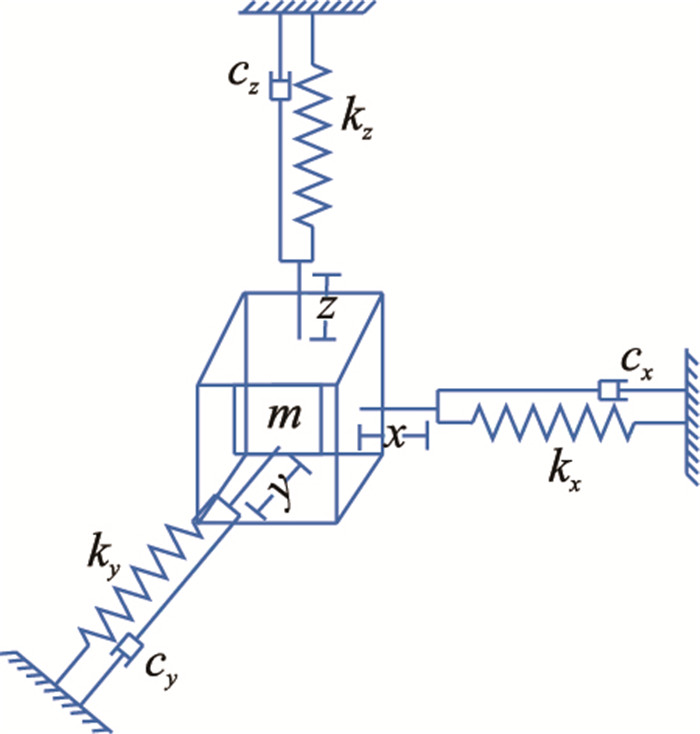 | $ \left\{ \begin{array}{l} {x^{''}} + 2{\zeta _x}{\omega _x}{x^{'}} + {\omega _x}^2x = {B_x}{\omega _x}^2{{\rm{e}}^{{\rm{i}}\omega t}}\\ {y^{''}} + 2{\zeta _y}{\omega _y}{y^{'}} + {\omega _y}^2y = {B_y}{\omega _y}^2{{\rm{e}}^{{\rm{i}}\omega t}}\\ {z^{''}} + 2{\zeta _z}{\omega _z}{z^{'}} + {\omega _z}^2z = {B_z}{\omega _z}^2{{\rm{e}}^{{\rm{i}}\omega t}} \end{array} \right. $ | (1) |