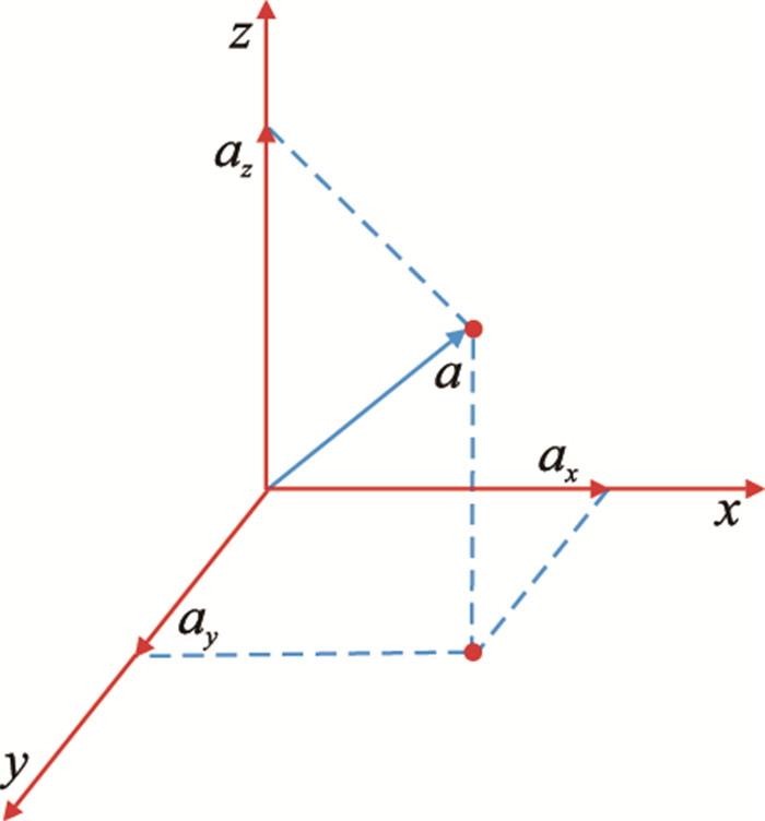 由于一维和二维的振动信息不能完全代表被测目标的振动状况,且潜油电泵的振动方向不固定,故本文同时采集3个维度的振动加速度,利用几何原理,对三维加速度进行合成,其合成向量的大小代表实际的振动值,其方向代表振动的方向。三维振动加速度瞬时值向量合成示意图如图 3所示。
