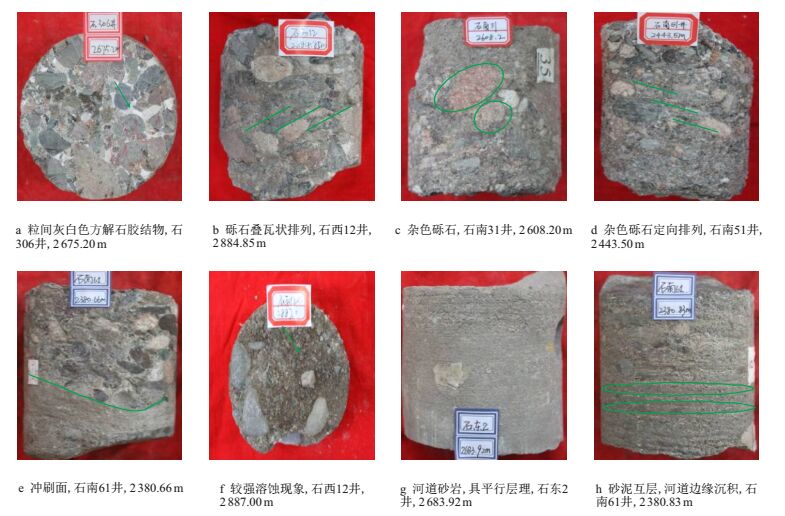 (4) 优质储层的发育受沉积微相、成岩作用和古构造3方面控制。古地貌控制沉积微相以及砂(砂砾)岩体的展布。辫状河道微相物性好于河道边缘。砂岩和砂砾岩储层的宏观展布、岩矿组成、储集空间及物性都不一样,控制优质储层发育的因素也不同。砂岩优质储层主要发育于夏盐8井区等构造高部位压实作用相对较弱的区域。而砂砾岩储层因强烈的碳酸盐胶结,物性相对较差,优质储层受控于断层发育处的溶蚀作用。