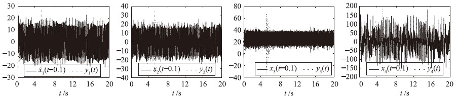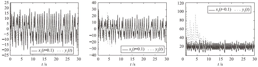 图 5 驱动系统(31)和响应系统(33)的状态同步轨迹(τ=0.1 s)Fig. 5 State synchronization trajectories between drive system (31) and response system (33) (τ=0.1 s)