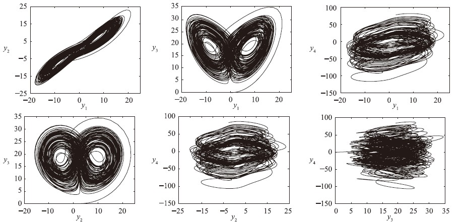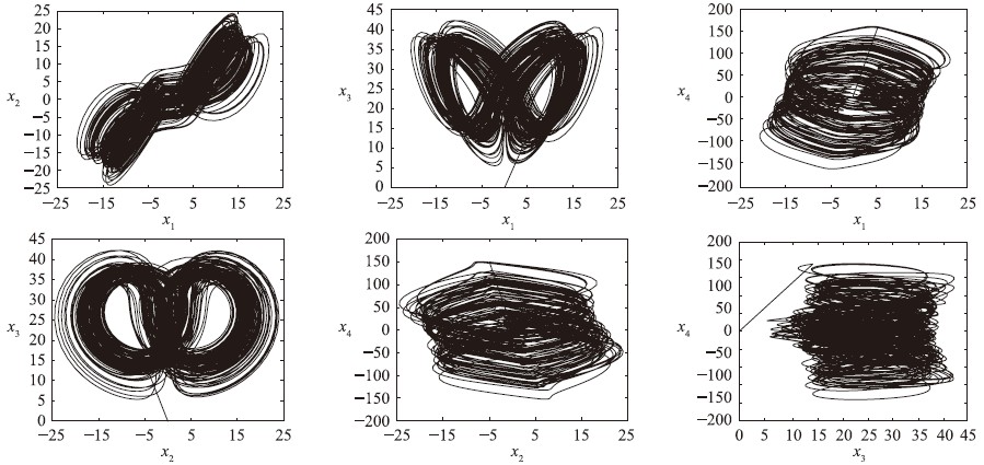 图 6 分数阶超混沌洛伦兹系统的混沌吸引子(α=0.98)Fig. 6 Chaotic attractor of fractional-order hyperchaotic Lorenz system (α=0.98)