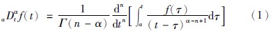 2 分数阶微积分 2.1 分数阶微积分的定义在分数阶微积分理论的发展过程中,出现了多种分数阶微分的定义[23],其中应用较多的有Riemann-Liouville(R-L)分数阶微分定义和Caputo分数阶微分定义. R-L定义常用在纯数学理论研究领域; 由于Caputo定义更容易处理分数阶微分方程的初值问题,因而常用在实际工程中.