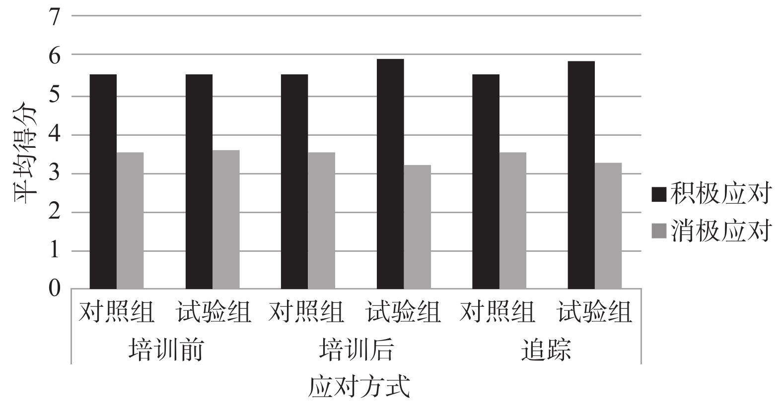 | 图 4 应对方式在培训前、培训后以及追踪测量上的分数差异 |