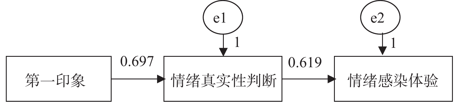 | 图 2 第一印象对情绪感染影响的中介模型与标准化路径估计值 |