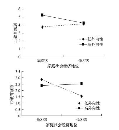 | 图 2 外向性在家庭社会经济地位对女生T1教育规划预测中的调节作用 |