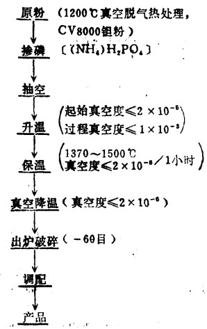 二 工艺条件和流程 (一) 试验工艺条件1.主要原材料 钽粉采用低温注钠搅拌钠还原经酸水洗、1200℃真空脱气热处理的原粉,CV8000, 典型的化学成分不大于(ppm):