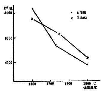 高比容钽粉的特点是粉末细,在制作阳极块时,通常因烧结温度控制值的偏差,而产生比容值的变化,俗称温度敏感性。掺磷凝聚后温度敏感性大为变小,如图 1,与此同时耐压性得到了提高,用32伏检验条件(1750℃30分烧结,160伏赋能)比电容值达6000~7000μfv/g。用B—42条件检验(1900℃30分烧结,200伏赋能)必竟顺利通过,故称之为“多用途钽粉”,既可作高比容粉用,又可作中压中容粉使用,从而扩大了使用范围。