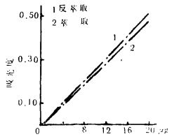 | SC2O3:10μg λ:550nm以试剂空白作参比 图 5 络天生S用量试验 |