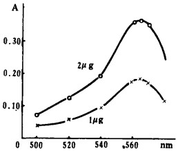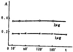 试验发现此络合物较稳定,显色后四小时内吸光度变化很小,为测定带来了方便。