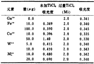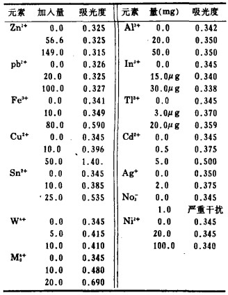 e 其他元素的干扰。据光谱分析,铜矿石中主要含有Cu、Fe、Zn、iS、Al及少量Pb、Bi、As等。笔者认为,凡在盐酸溶剂中能形成阴离子或络阴离子的元素都能生成离子缔合物或者