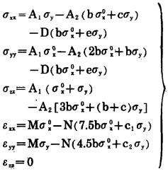 为求弹性解答, 可分别考虑σx0、σy及摩擦力的影响, 然后将各部分的解答叠加。从式(5)及式(6), 得到的弹性解答的结果为: