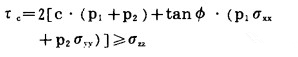 其中: c, ϕ分别为岩体的内聚力和内摩擦角。