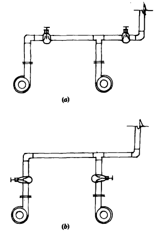 1.3砂泵在选矿厂使用的场合较多,且往往在一处并联安装两台,一台运行,一台备用。通常安装的形式如图 1所示。