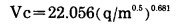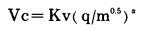 c. 正体质心速度Vc与抛掷速度系数Kv 群药包爆破时, 相邻两个(或四个)药包的联合作用区称为正体。正体质心速度Vc与抛掷速度系数Kv、炸药单耗q、药包间距系数m间关系可表为: