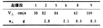 g. 专门观测酮试验分析 试验观测峒口标高+ 1598 m, 距离最近的爆破蛔室为Ⅱ-11#, 相应标高为+ 1625m。药室与峒口距离为43 m。观测峒口实测振动速度与加速度如表 2。