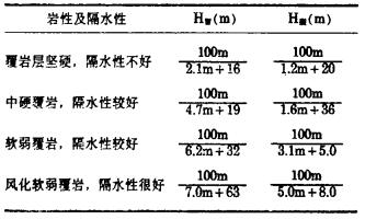 当H与h1+h2接近时,需进一步査清开采条件、地质条件、岩性及其它因素,深入研究.
