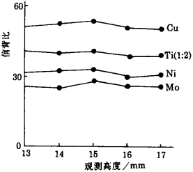 (4) 观测高度选择:仪器观测高度的设置, 也直接影响着待测元素信背比。根据考察结果(见图 5), 较合理的仪器观测高度应设在工作线圈上方15mm处。