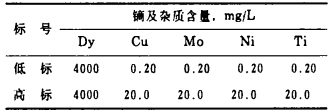 (4) 氧化镝验证样检测结果:氧化镝验证样由北京有色金属研究总院提供。经本法检测20次, 其平均值见表 6, 也得到了提供单位的认可。
