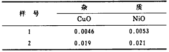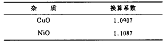 (2) 氧化镝中氧化铜、氧化亚镍分析结果的计算:把计算机输出的铜、镍百分含量乘以表 3中的换算系数, 得到分析结果。