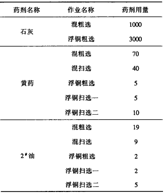 | 表 1 浮选药剂用量 g/t |