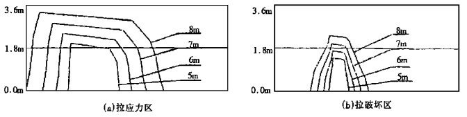 | 图 2 采空区顶板拉应力和受拉破坏区 |