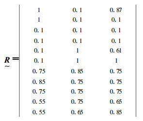 上述指标单位不同, 为具有可比性, 首先需无量纲化, 其中对定量指标采用线性函数法, 对定性指标采用9级赋值标准给出评定值。因此, 可得评价模糊矩阵