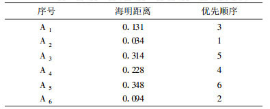 由表 2可见, A1、A2、A6方案与金山金矿固定样本的海明距离较小, 初选结果为A1、A2、A6方案。