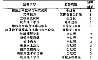 2.5 监测周期基坑大小与深度决定了施工期及监测周期长短, 见表 1。
