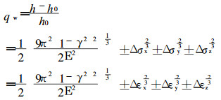 在采矿工程中, 矿体开采后, 在垂向上引起应力变化值相对较大些, 作为一阶近似可进一步简化上列公式, 即只考虑垂向应力影响。当含水层疏干受压时, 由此引起地表下沉, 沉陷系数η为: