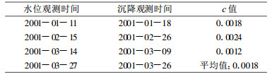 3.3.3 处理结果取观测数据中时间段最接近的沉降值与水位观测值进行处理, 结果见表 1。