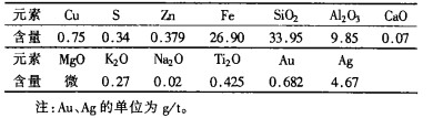 1 选矿试验 1.1 矿样多元素化学分析和铜物相分析试验矿样取自城门山铜矿7#矿体38m台阶, 矿样多元素化学分析和铜的物相分析见表 1、表 2。