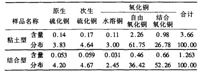 结合型氧化矿浸出效果明显不如粘土型氧化矿, 主要是铜矿物与硅、铁结合, 难于解离出来, 试验显示, 用一般浓酸熟化即可, 且熟化时间不宜长。