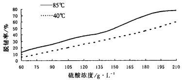 | 图 1 硫酸浓度与铋脱除率的关系 |