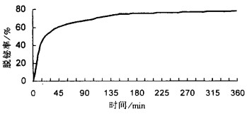 由图 3可见, 3 h后脱铋率提高较慢, 因此, 脱铋反应时间应控制在3h以上。