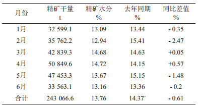 | 表 1 2005年1~6月与2004年同期铜精矿水分比较 |