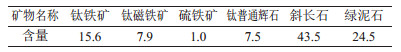 1 矿石性质 1.1 矿物组成承德钢铁公司黑山铁矿矿石类型为磁铁矿和钛铁矿为主的混合矿。其选钛厂的原料来自选铁后的尾矿。经镜下鉴定,原矿中的金属氧化物以钛铁矿和钛磁铁矿为主;同时有少量白钛矿、赤铁矿、褐铁矿;金属硫化物为黄铁矿、黄铜矿等;脉石矿物则以斜长石和绿泥石为主,还有少量石英、方解石、黑云母等;矿石嵌布粒度较细。其原矿的矿物组成及化学分析见表 1、表 2。