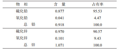 由表 1、表 2分析结果可见,试样中除金外,铅、锌金属含量已达到工业开采品位,应予以回收,根据有价矿物种类及矿物性质和成分,试验采用浮选法,以金回收为主,综合回收伴生的铅、锌、硫等有价矿物,铅、锌金属以硫化物形态产出,黄铁矿为主要载金矿物。试验表明:铅、锌、硫(金)依次优先浮选较适合本试样的综合回收要求,故选择优先浮选为本次实验研究的流程。
