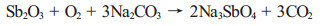 在还原过程中,加入碱(碳酸钠)作为助熔剂。碳酸钠与氧化锑、氧化砷以及其他酸性氧化物(如SiO2等)结合形成复盐,因其比重轻而浮于锑面形成锑渣。主要化学反应如下: