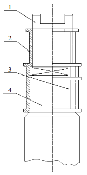 | 1—螺纹头;2—定位套;3—定位套筋板;4—主轴 图 2 定位套装配图 |