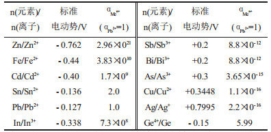 | 表 2 各杂质元素的标准电动势及其与Pb2+平衡共存时的浓度 |